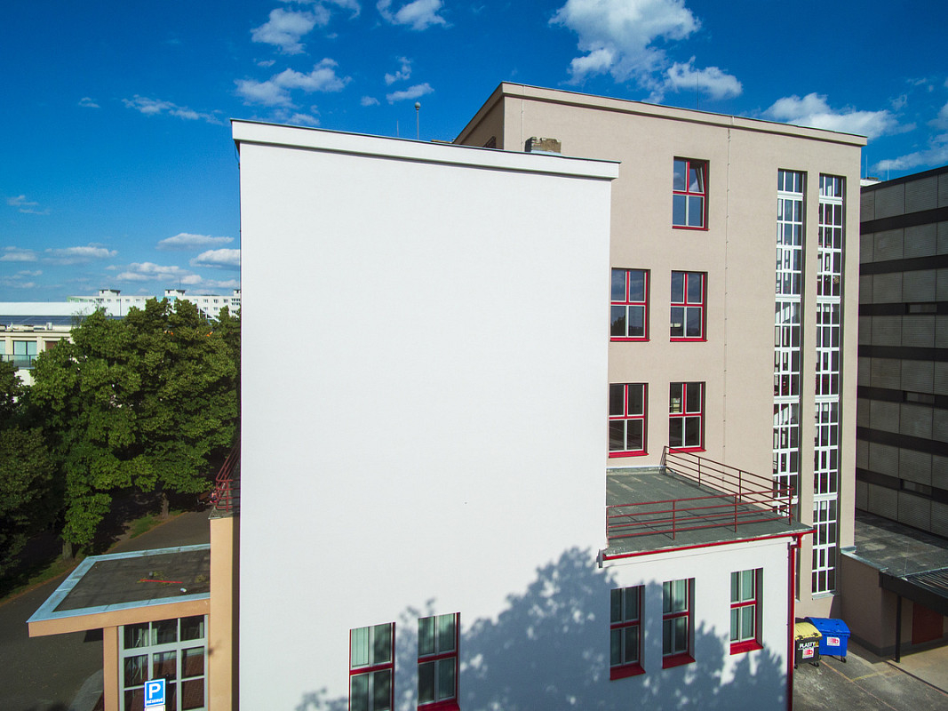 Rekonstrukce historické budovy Gymnázia Luďka Pika v Opavské ulici v Plzni. Oprava a obnova fasády památkově chráněného objektu, 3-6/2020.